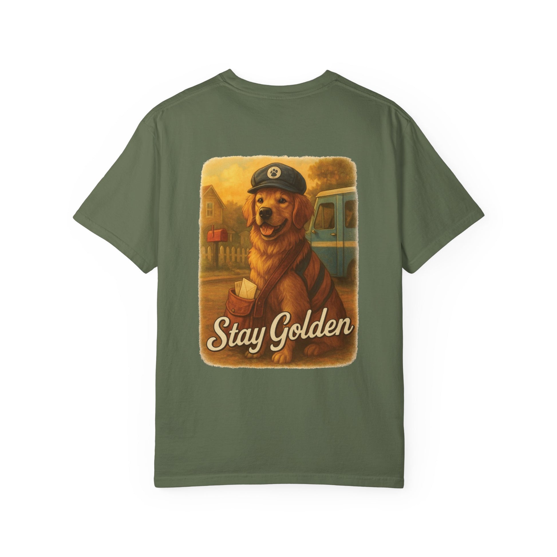 This tee takes inspiration from the classic mail carrier emblem and reimagines it with our signature golden paw and Stay Golden script. It’s simple, friendly, and instantly recognizable — like the warm welcome of a happy pup at the door.