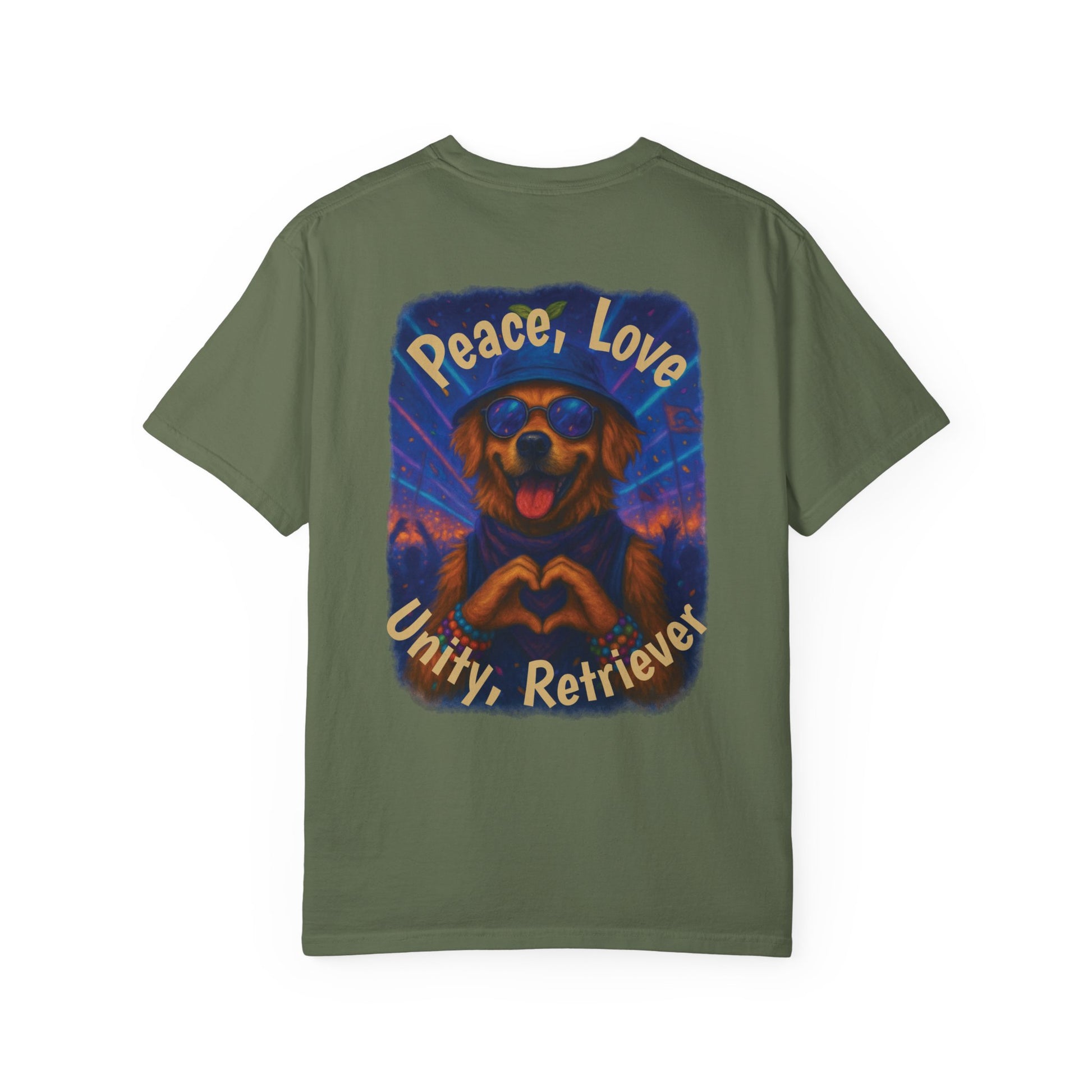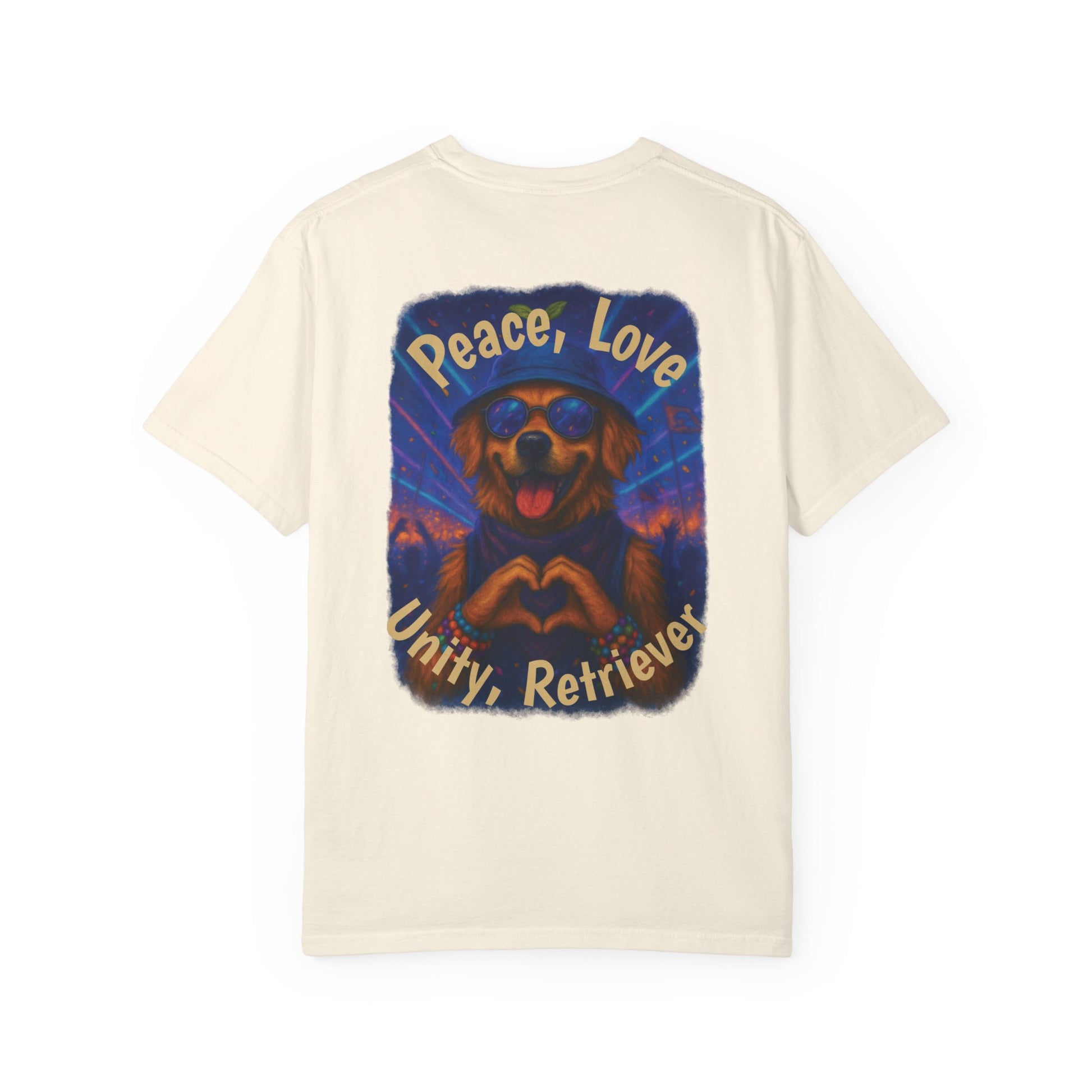 Ravers: Peace, Love, Unity & Retrievers Tee – Comfort Colors® Garment Dyed Shirt